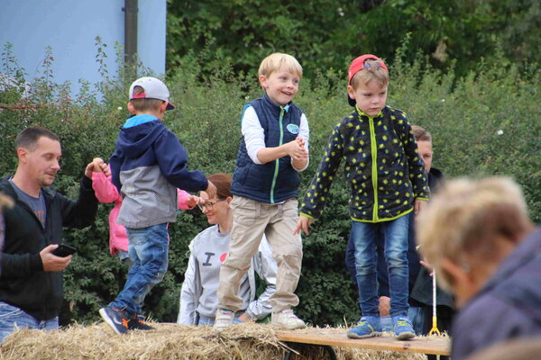 Für die Kinder und Jugendlichen wandelte sich die Kirchstraße am CVJM-Jugendhaus zu einer bunten Spielstraße für Groß und Klein um. Während sich die Jüngsten der Familie eine gesamte Spielstraße mit Bällebad und Strohhüpfburg vergnügten, erprobten sich die Älteren unter ihnen beim Klettern an einer Kletterwand des Technischen Hilfswerkes.