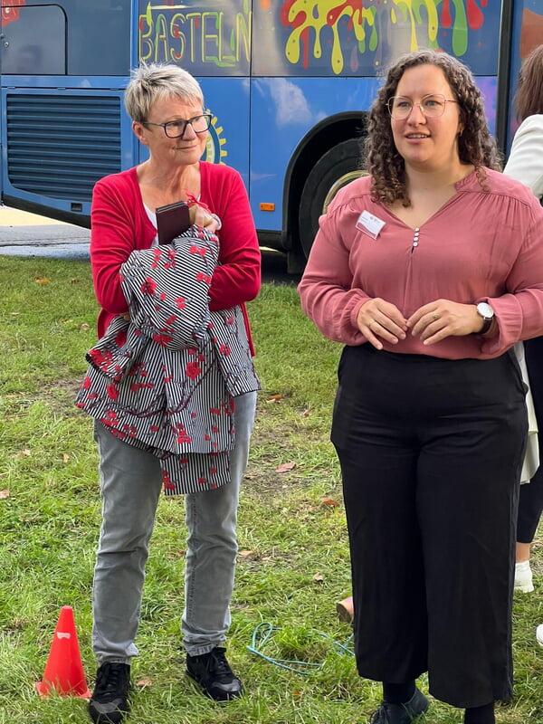 19 Inner Wheelerinnen aus 11 Clubs machten sich Mitte September auf den Weg in das Oderbruch, um unser Distriktprojekt „Blauer Bus“ zu besuchen. Die Anreise war so vielseitig wie wir selbst – 15 Freundinnen reisten mit der Bahn, zwei mit dem Flugzeug und zwei mit dem Auto. Bei der Ankunft am Bahnhof in Strausberg war die Freude groß: ein herzliches Wiedersehen mit den Mitarbeitern/innen des CVJM, die Nähe unter Freundinnen und die Vorfreude auf gemeinsame Tage voller Begegnungen.